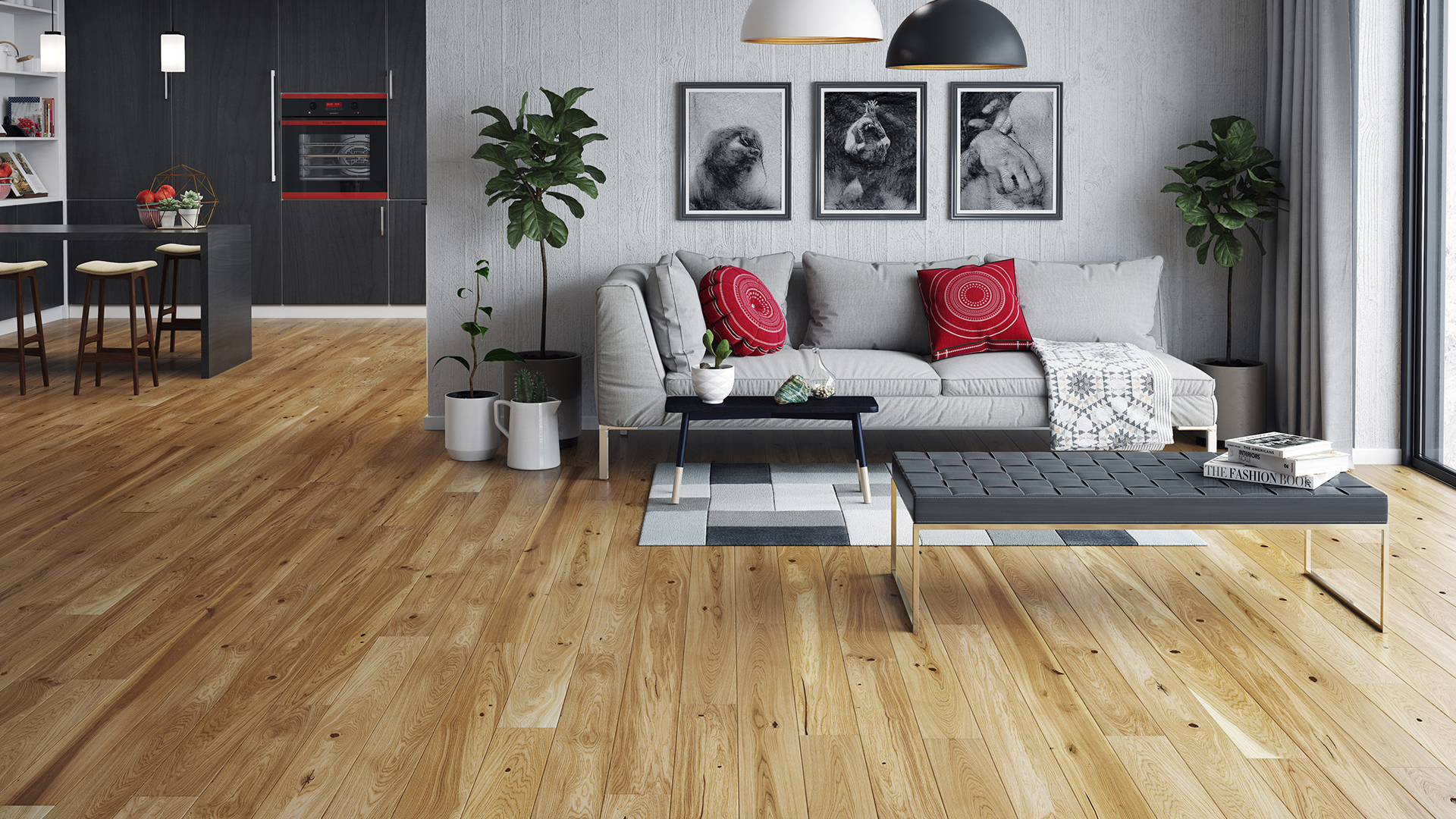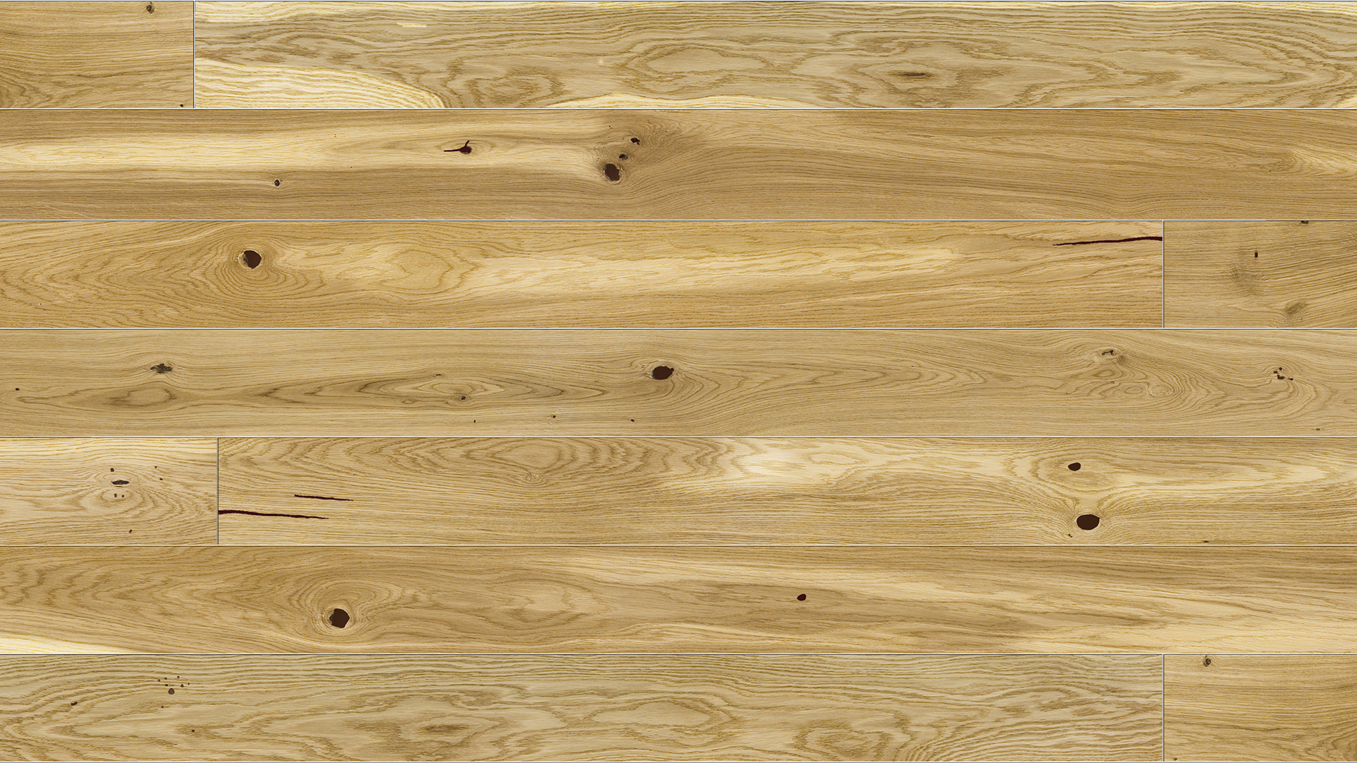Parchet triplu stratificat din stejar, cu design variat și un aspect rustic datorită numărului mare de noduri. Teșirea pe cele 4 laturi oferă un efect vizual placut.