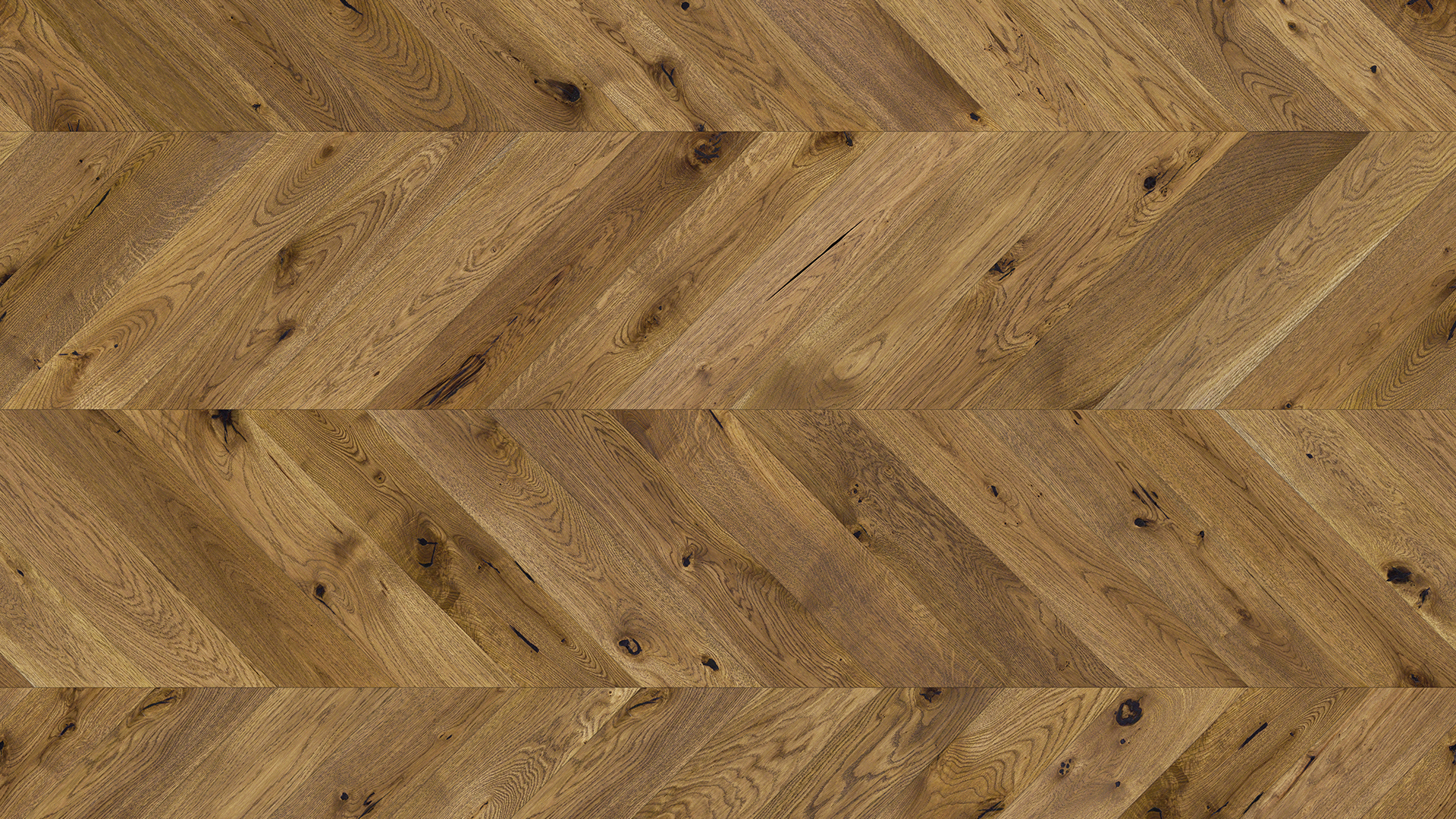Pardoseală de stejar finisată cu o nuanță maro caldă, caracteristicile lemnului fiind puternic accentuate. Structura pardoselii a fost evidențiată prin periaj, iar canelurile pe cele 4 laturi înnobilează pardoseala. Finisat cu lac mat.