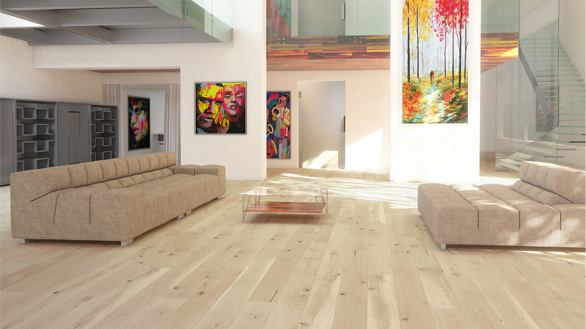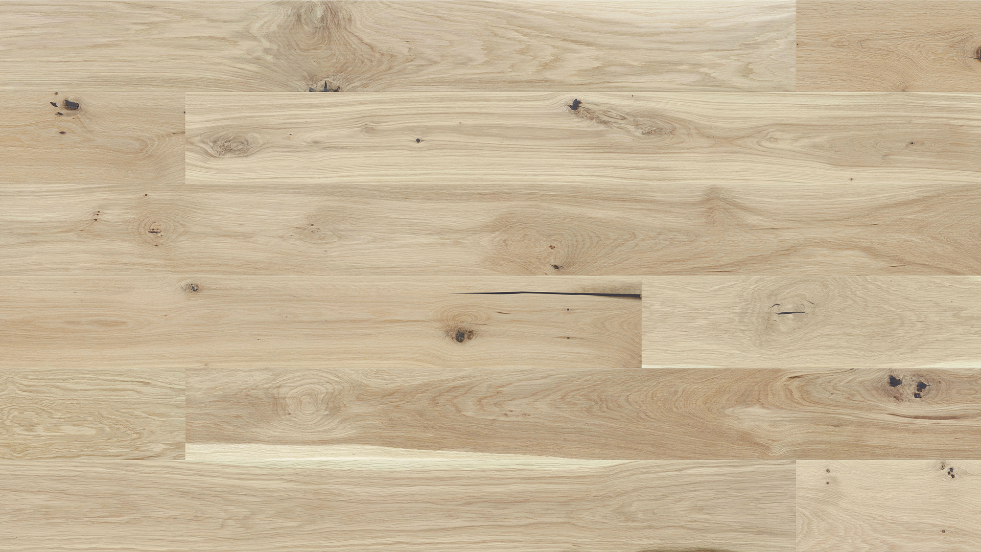 Parchet cu o nuanță de crem deschis, lăcuit, cu lățimea de 180 mm, care datorită șanfrenării laturilor lungi, dobândește eleganță iar plăcile sunt optic prelungite.