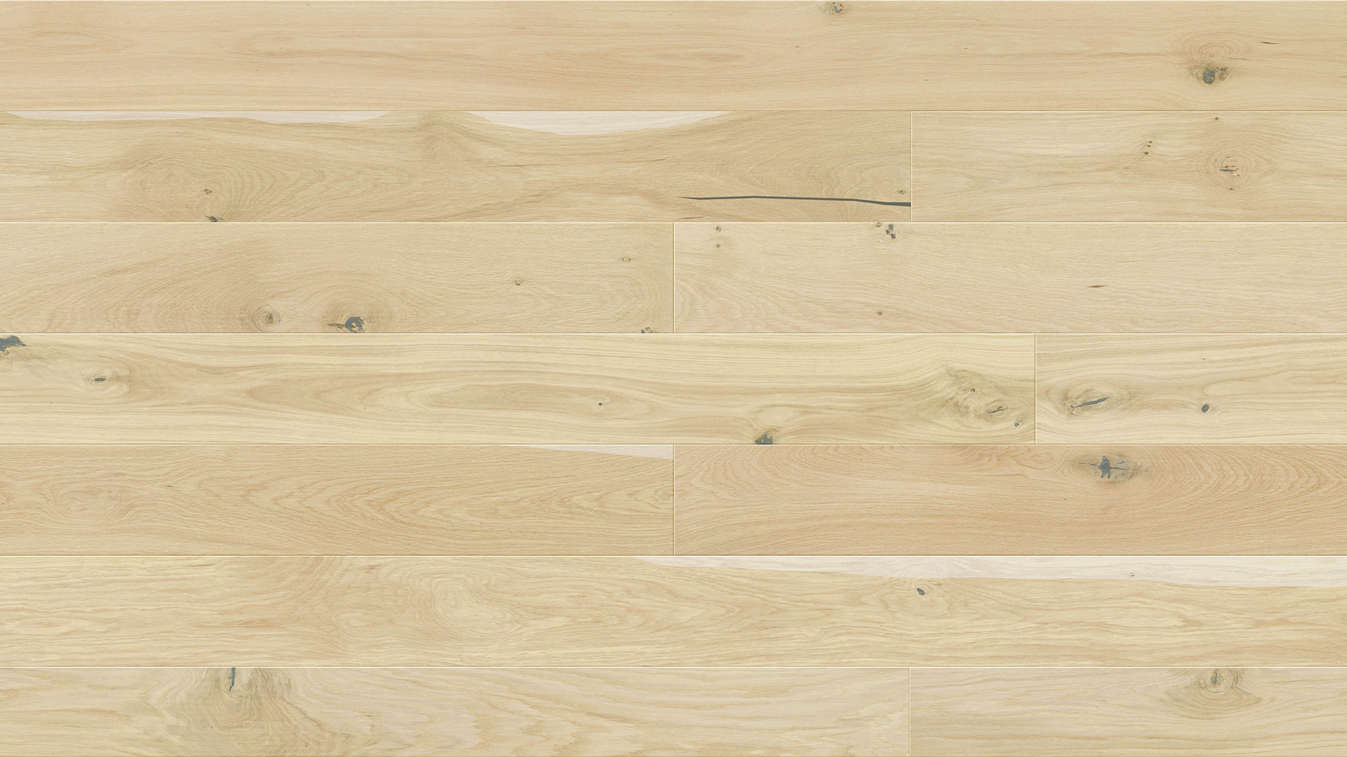 Plăci cu 1 lamelă cu lățimea de 155 mm într-o nuanță de crem deschis. Datorită șanfrenării pe patru laturi, pardoseala dă impresia de suplețe. Parchet finisat cu lac mat.