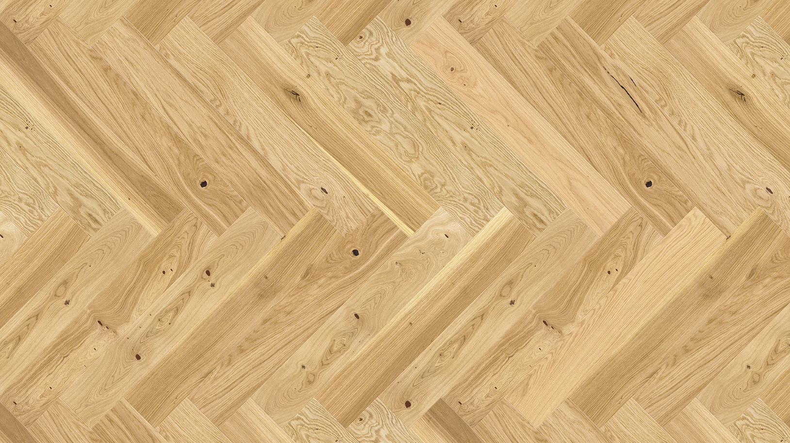 Pardoseală din stejar de o culoare care imită lemnul brut și care a fost obținută datorită utilizării unui mod unic de finisare. Subtilitatea pardoselii este conferită de canelurile de pe cele patru laturi, iar desenul inelelor a fost evidențiat prin periaj. Finisată cu ulei natural.