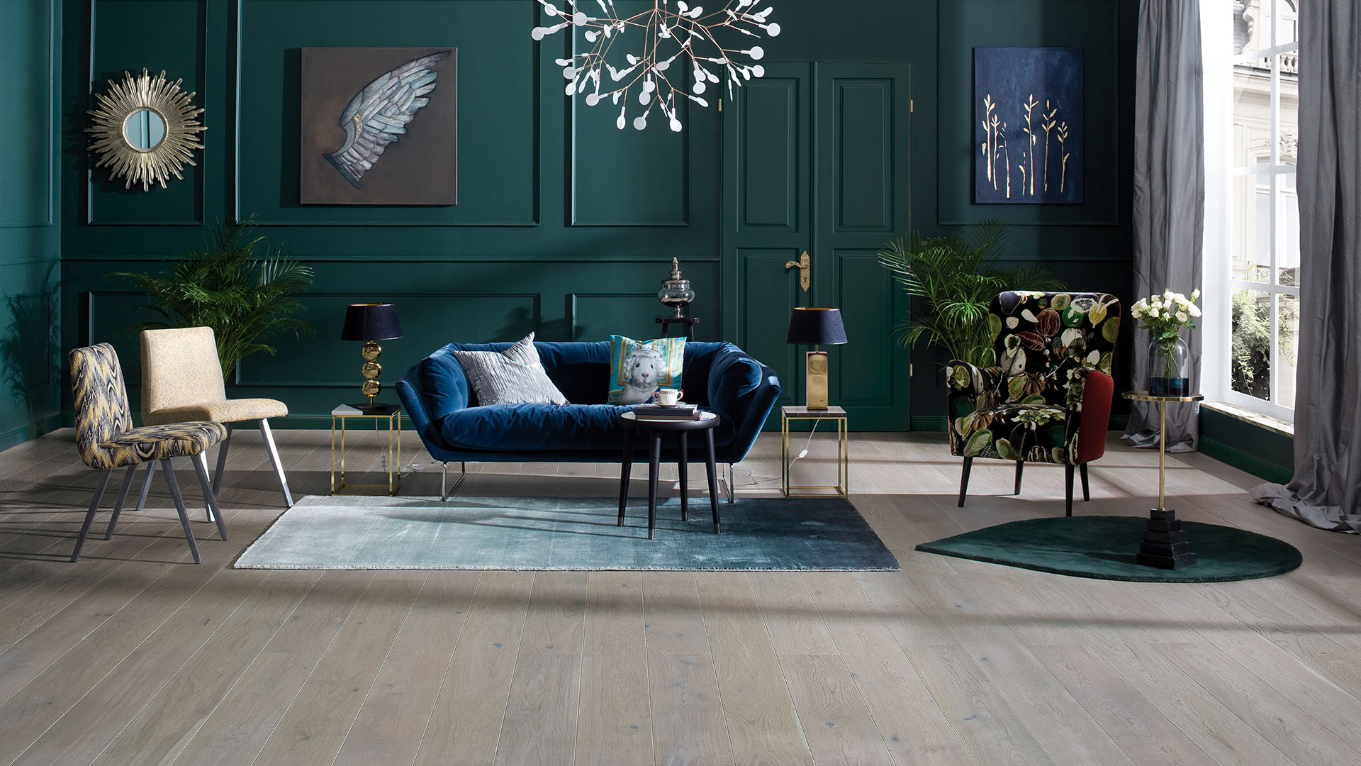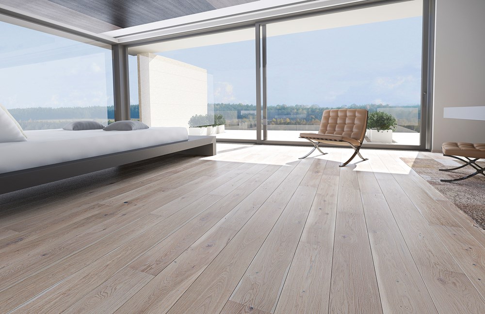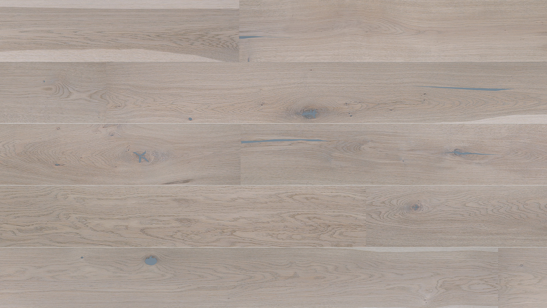 Podea din stejar, cu o singură lamelă, într-o nuanță subtilă de cenușiu, având o lățime de 207 mm și o lungime de 2200 mm. Textura lemnului este evidențiată prin periere, iar teșirea pe două laturi o alungește optic. Finisată cu lac mat. Stejarul Touch luminează interiorul, completând și subliniind perfect caracterul acestuia.