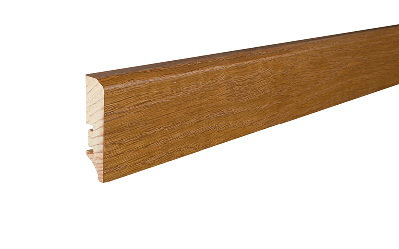 Plintă de pin cu furnir de tali lacuită. Este extrem de funcțională și stabilă dimensional. Se potrivește perfect cu orice tip de podea.