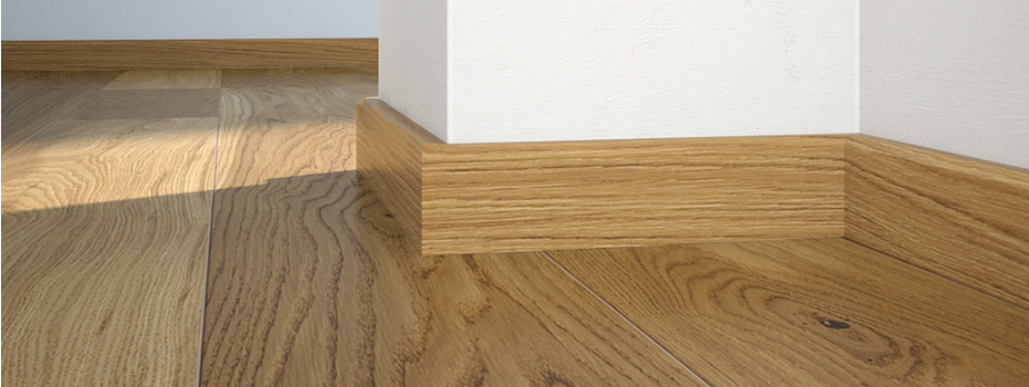 Plintă de pin cu furnir de stejar lacuit. Este extrem de funcțională și stabilă dimensional. Se potrivește perfect cu orice tip de podea.