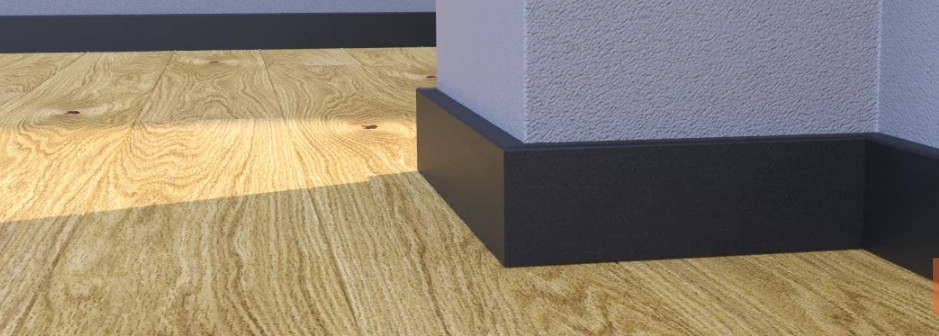 Plintă din lemn de pin stratificat îmbinat în dinți pentru a avea o stabilitate la lungime, este infoliată cu folie neagră.